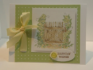 I have found a new challenge site that I just adore. The images are so beautiful...Please check out Isabella's Sketchbook if you have the time. The challenge was to create a card for Mom, yours or someone special. I used the garden gate image that I bought the other day and am pleased with how it came together. I used some dp from NRN designs layered on Pale Plum card stock. The ribbon is another of my Dollar Tree finds and I simply punched out an oval and added my sentiment which is from Gina K designs set A Beautiful Life. I colored the image with my SU markers. I have several posts today, so please check them out and leave me a comment if you have time.